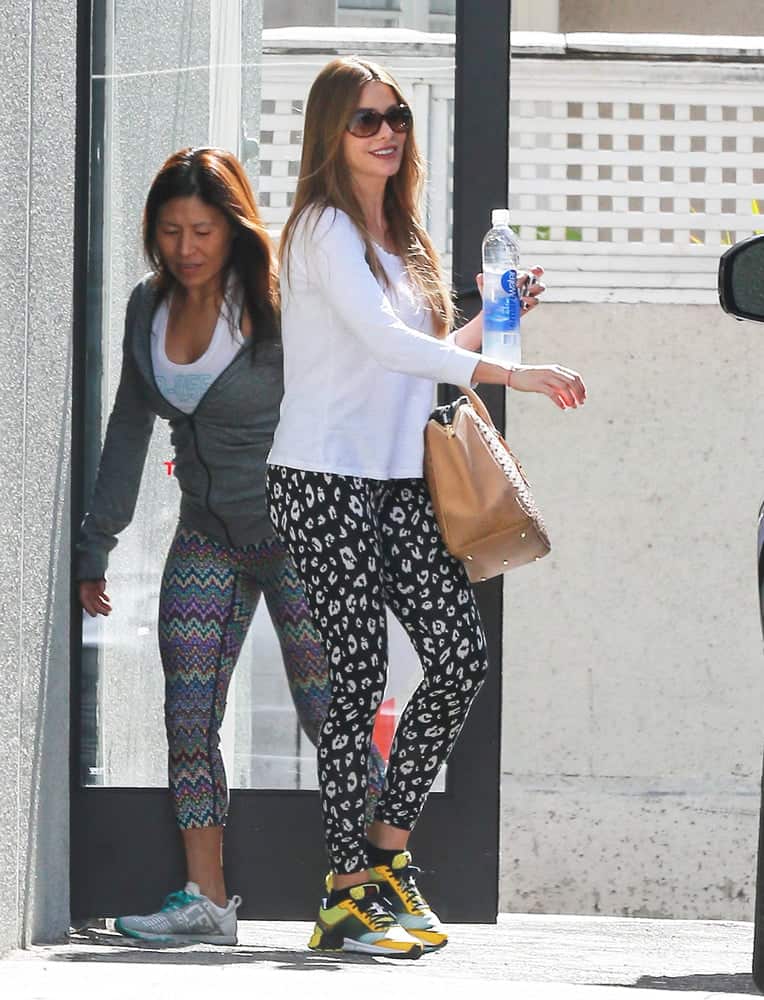 Sofia Vergara in Blue Yoga Workout Pants Sofia Vergara yoga pants photos continue to trend as the actress and television star effortlessly blends glamour with