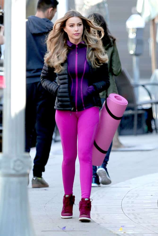 Sofia Vergara in Pink Yoga Pants Sofia Vergara pink yoga pants street style photos highlight the actress embracing bold activewear fashion. Spotted walking confidently down